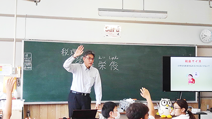 質問を交えながら進めていき、みなさんとても元気に手を挙げて答えてくれましたが、一部の子に偏らず満遍なくみんなに当てることの難しさを痛感し、学校の先生はたいへんだなと改めて感じました。
